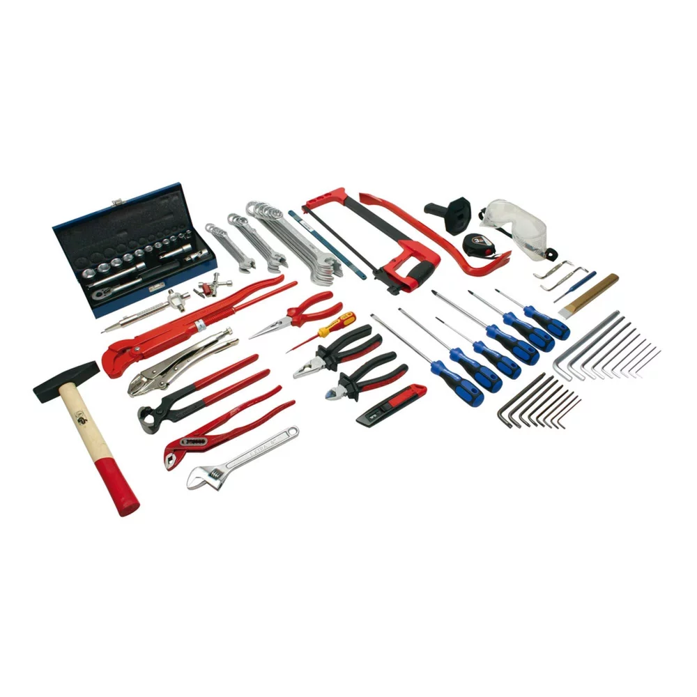 Dönges set ručnih alata sadrži nekoliko vrsta odvijača, univerzalni ključ, nekoliko vrsta velikih i malih kliješta, čekić, ručnu pilu, otvorene ključeve različitih veličina, imbus ključeve, zaštitne naočale…< /p>