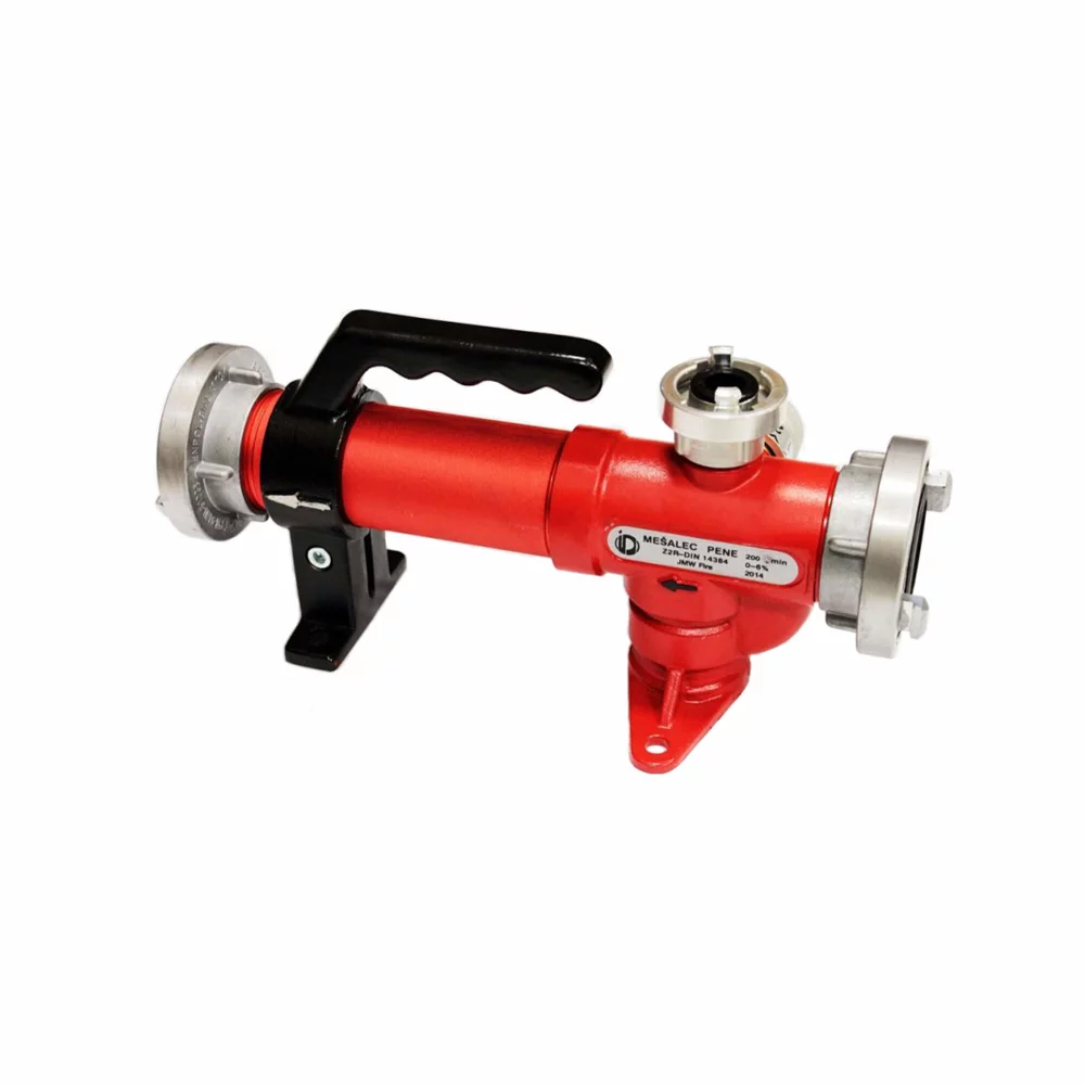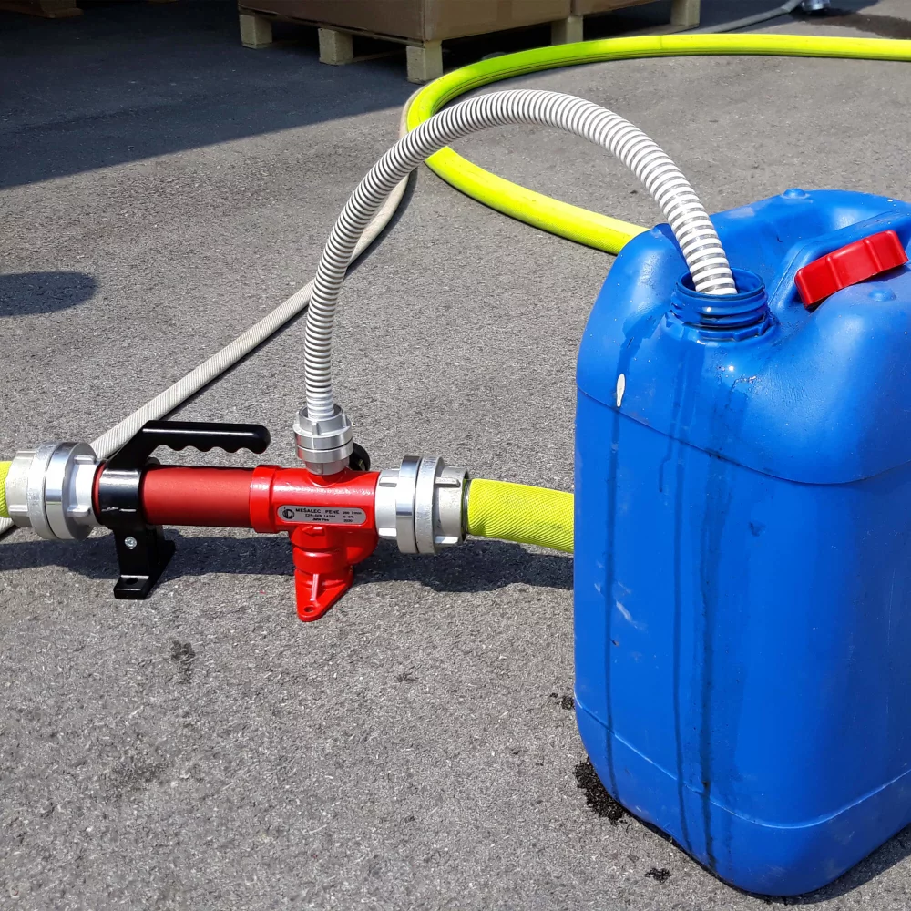 Mješalica za pjenu se koristi za miješanje i proizvodnju pjene s vodom. Mješalica se postavlja između potisnih cijevi i na konektor koji se nalazi na gornjoj strani miješalice spajamo usisnu cijev promjera 25 mm koja automatski usisava pjenu iz posude u mikser.