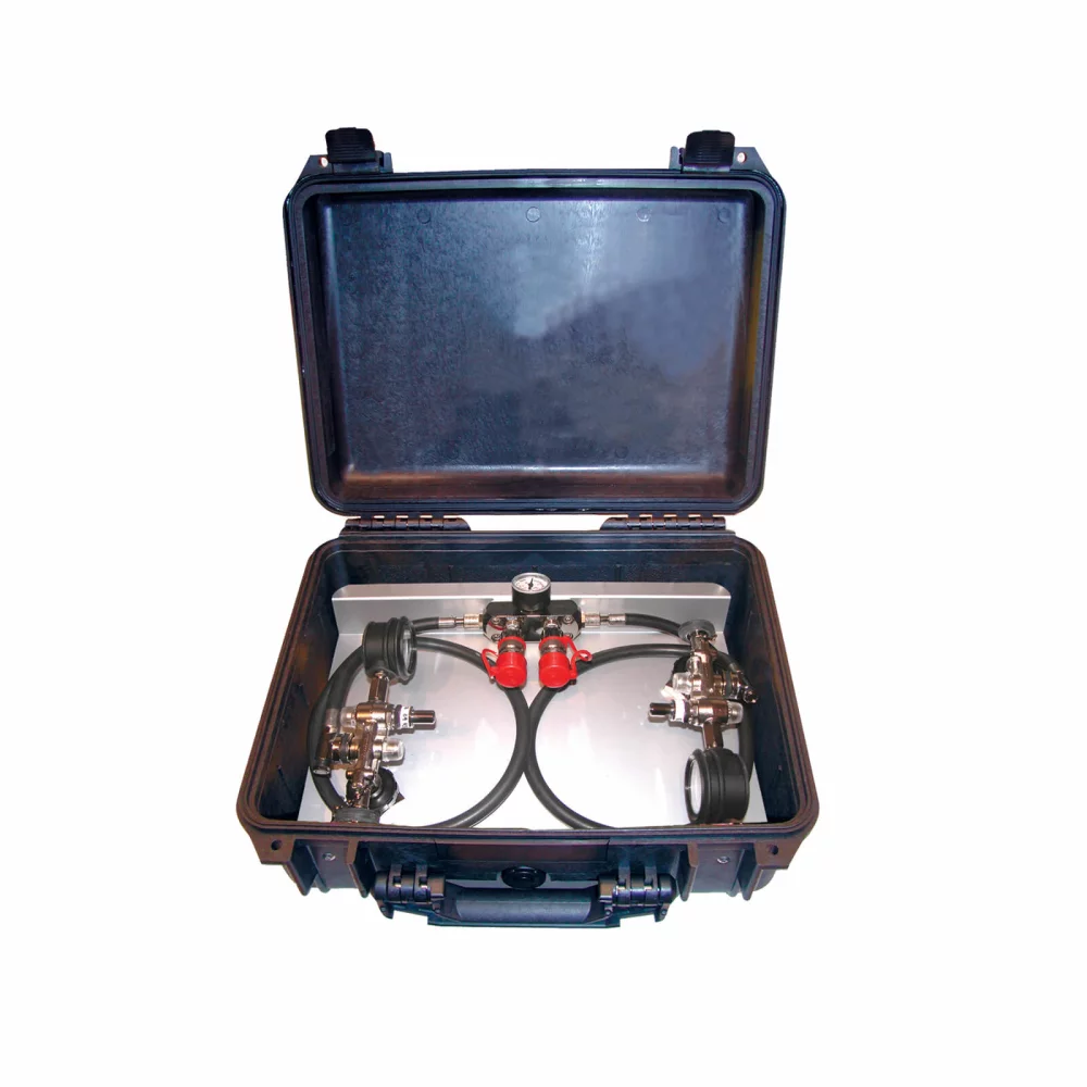 Priključci na izvore zraka su prikladni za 200 i 300 bara i opremljeni su ventilima za smanjenje pritiska. Tlak u izvoru zraka koji se trenutno koristi može se očitati na visokotlačnom manometru. Kada pritisak izvora vazduha padne na 55 bara, aktivira se zvižduk upozorenja i izvor vazduha se mora promeniti. Protočni ventili sprečavaju povratni tok kada se smanji pritisak u sistemu.