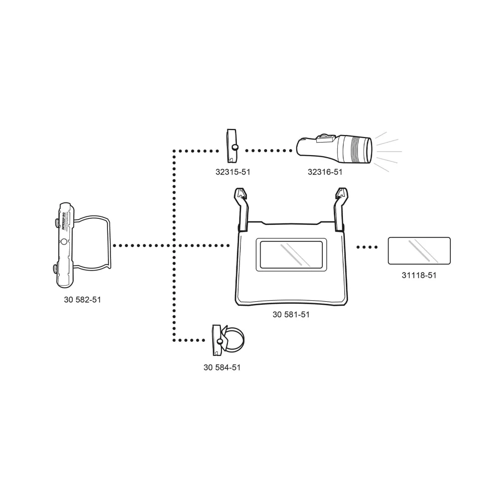 Pričvršćivanjem dodatka direktno na masku za lice, ronilac će moći slobodnije koristiti obje ruke. Za pričvršćivanje držača pribora nije potreban nikakav alat, jednostavno zategnite dvije matice rukom i pričvršćena je na bočnu stranu maske. Različiti dodaci se mogu pričvrstiti na uklonjivi klizač koji jednostavno "klizi" na nosač i zaključava se u svom položaju. Ovaj jednostavan, ali robustan dizajn omogućava promjenu pribora bez skidanja ronilačke maske. Dodatak se lako može staviti ili ukloniti pod vodom, omogućavajući roniocu da ga koristi na najefikasniji način.