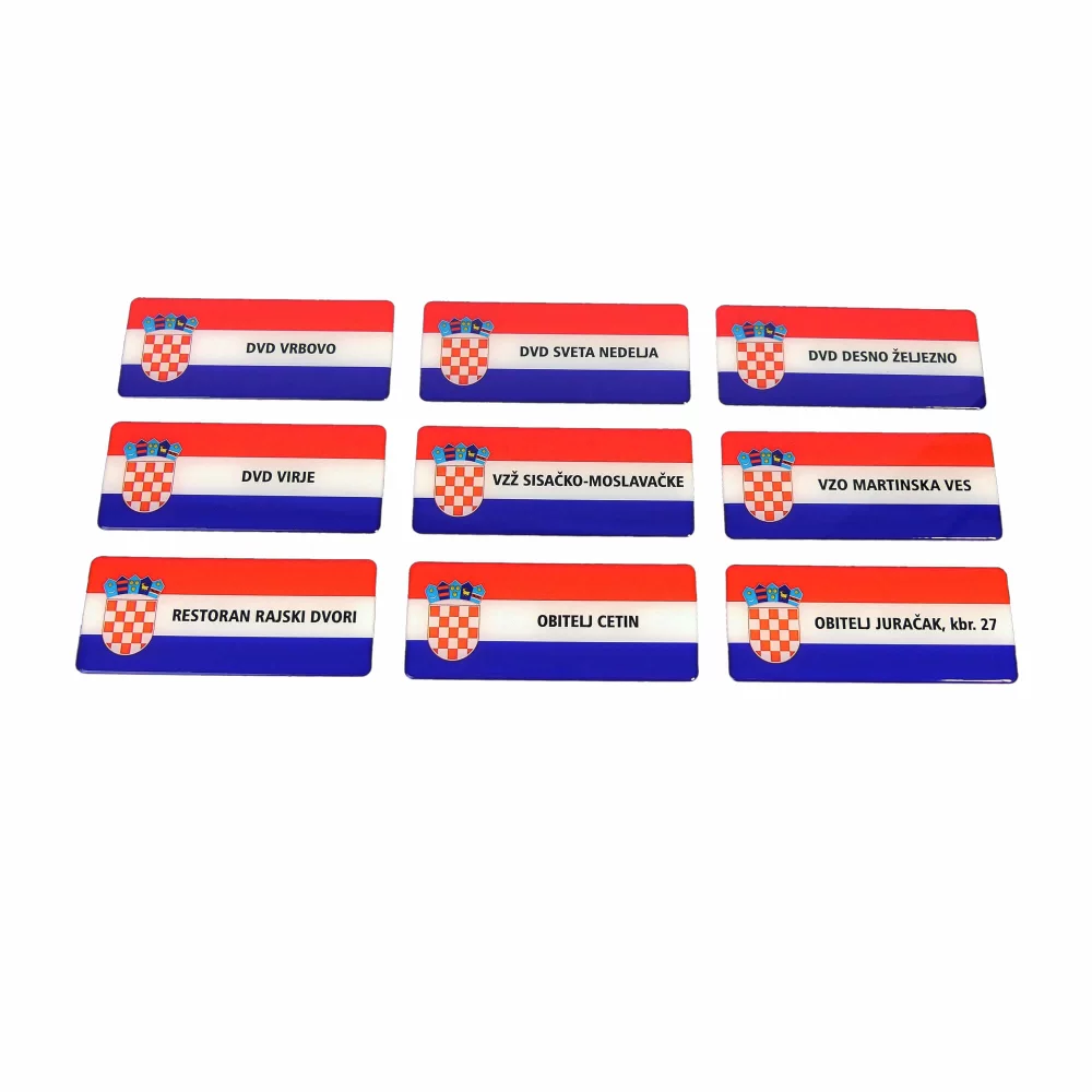 Moderna verzija vatrostalnih traka u obliku 3D pločica, sa hrvatskom zastavom i natpisom po želji kupca.