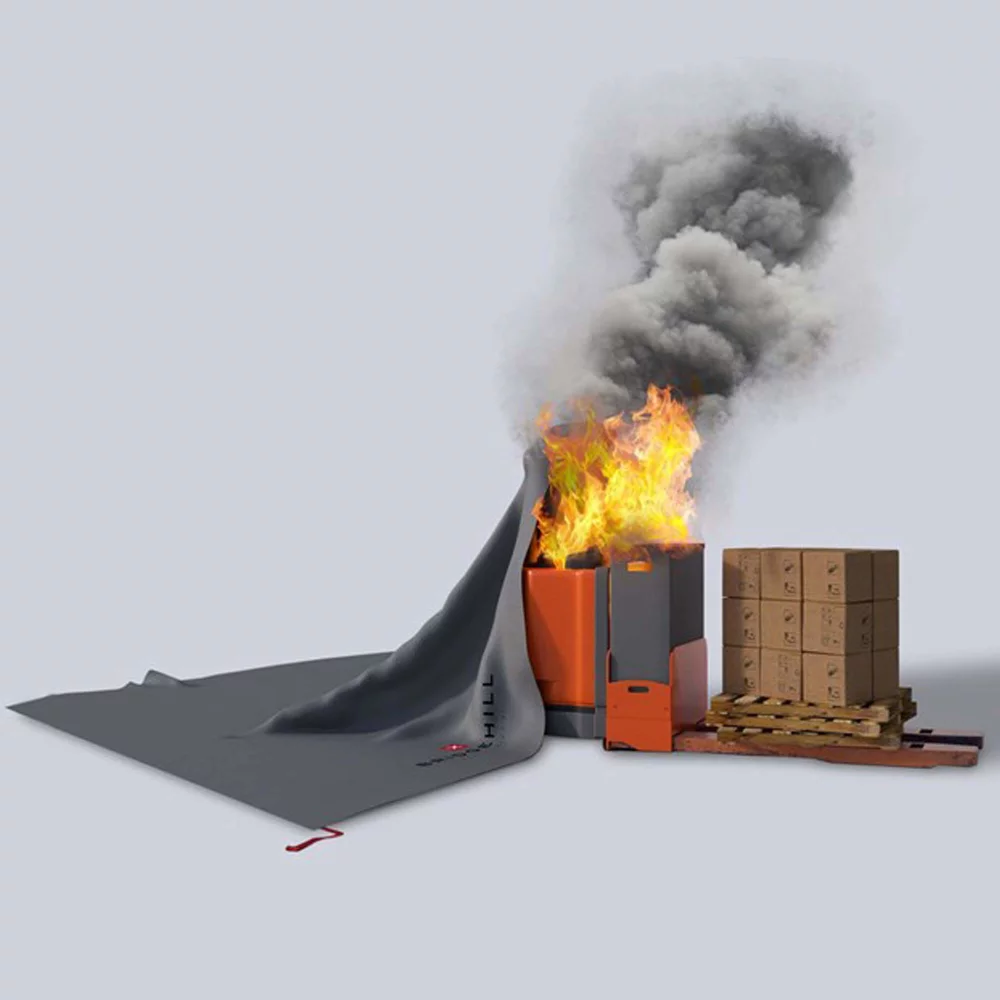 Protupožarni pokrivač za višekratnu upotrebu (do 50 požara), za izolaciju požara na električnim viljuškarima.