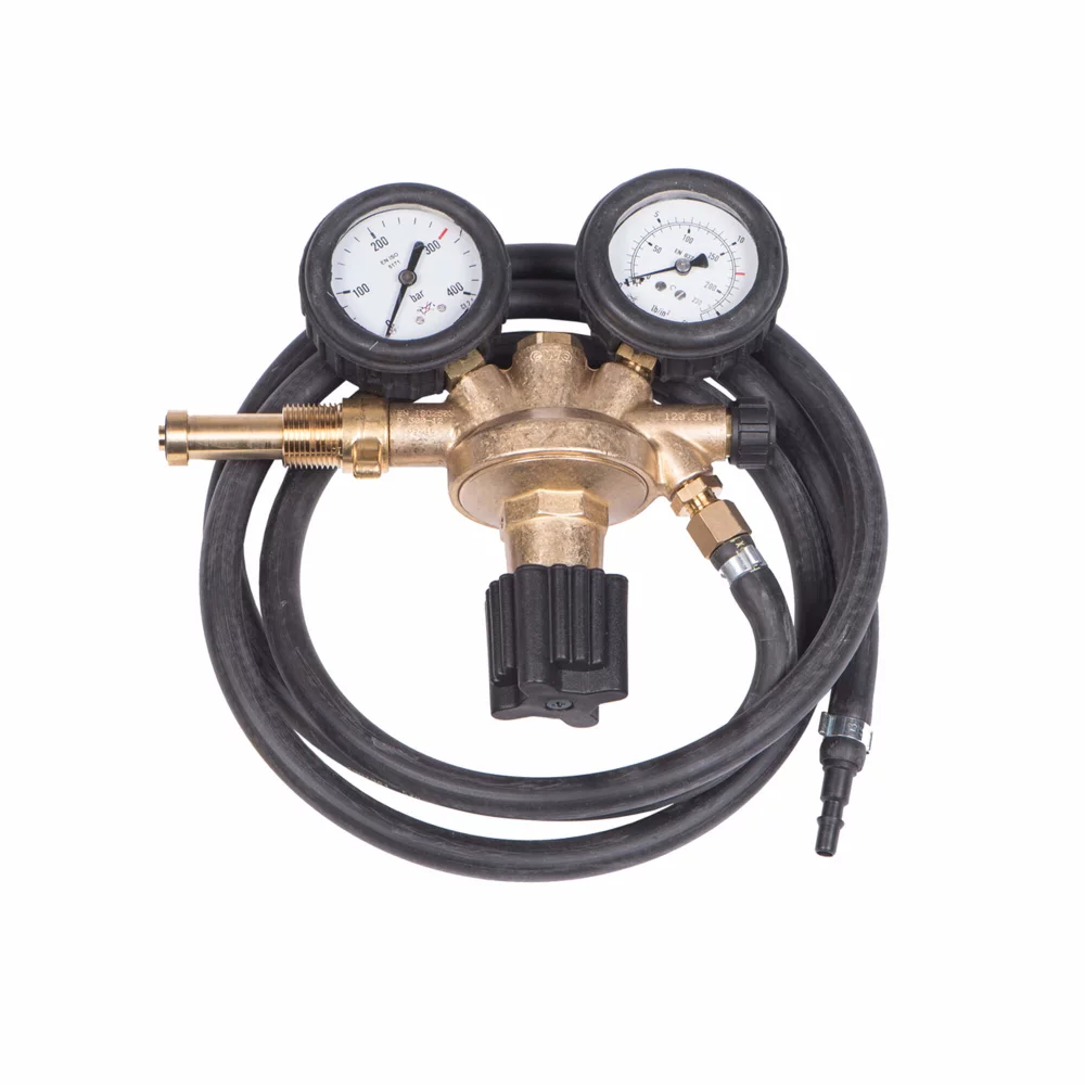 Reduktor pritiska za zračne boce od 300 bara. Komplet sadrži crijevo dužine 2 metra.