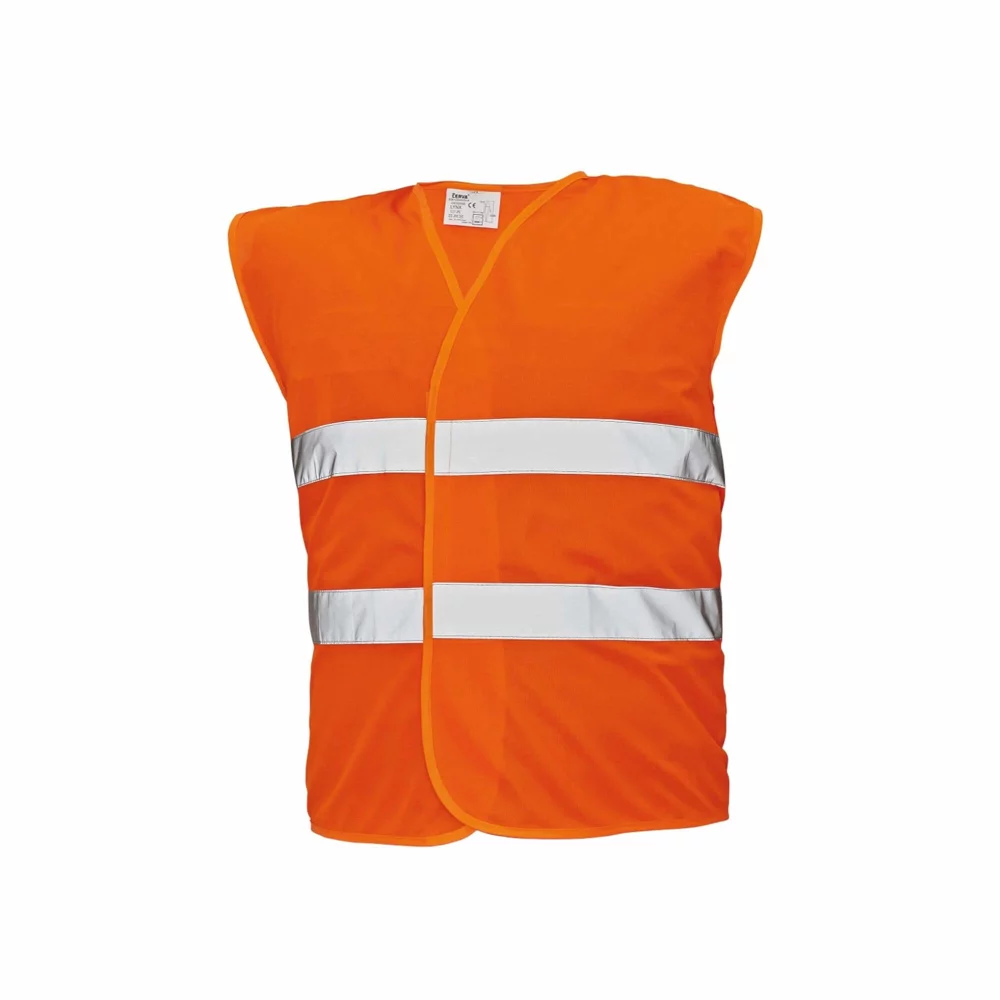 Prsluk visoke vidljivosti sa reflektirajućim trakama, boje: narandžasta ili žuta.