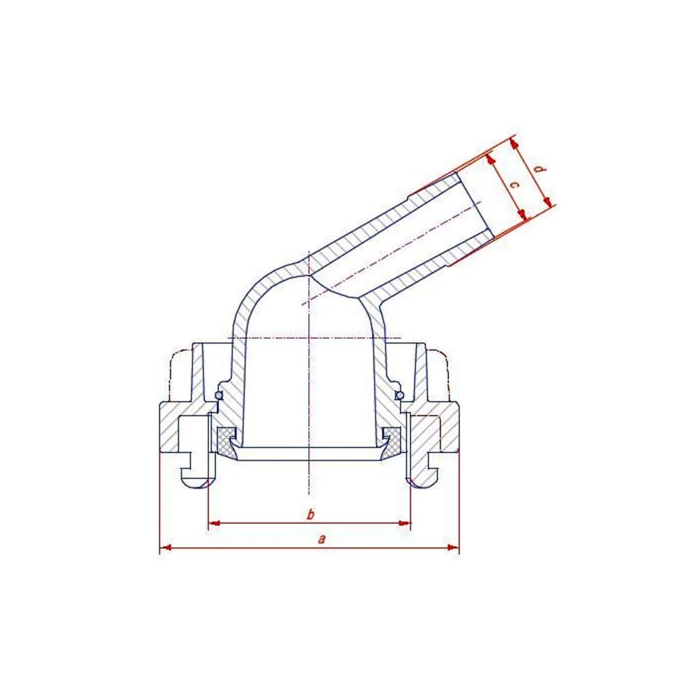 Pritisna spojka je postavljena na uređaj sa izlaznim prečnikom fi 52 (2"), a sa druge strane spojena je sa kosim vratom fi 25 (1") pod uglom od 45° (smanjiti) .