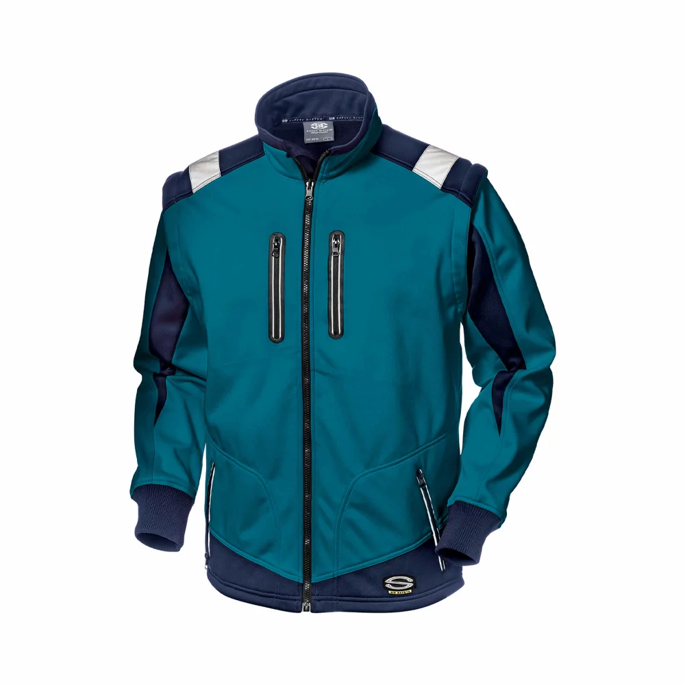 Zatvarač, rukavi koji se mogu odvojiti, bočni džepovi i džepovi na grudima sa patentnim zatvaračem sa vodootpornim reflektirajućim poklopcem; pletene manžetne, reflektirajuće linije preko ramena. Elastična i prozračna tkanina. Softshell odjeća je pogodna za zaštitu od vjetra, kiše i hladnog vremena.
