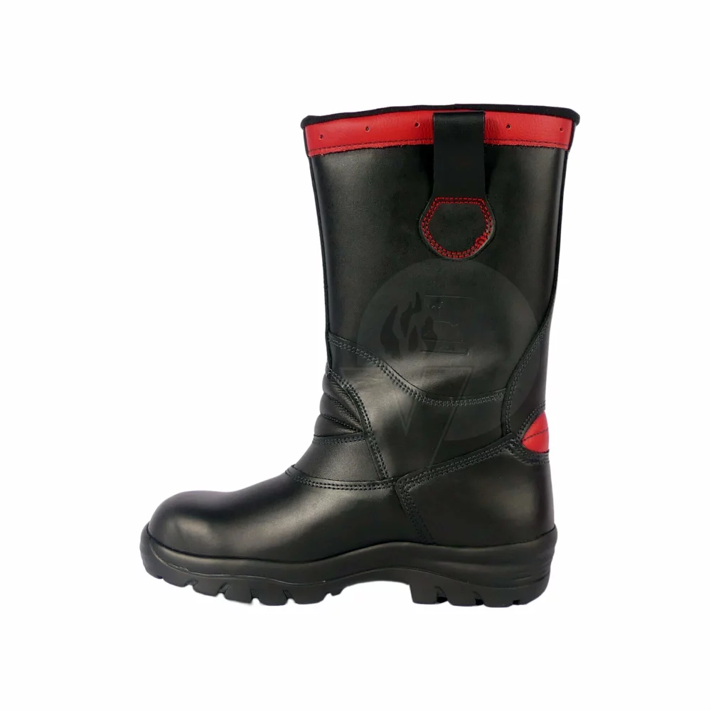 Kožne trake našivene sa obe strane čizme (sa crvenim negorivim koncem) omogućavaju lako i brzo obuvanje čizama. Crveni obrub na vrhu čizme i na leđima upotpunjuje dizajn ovog modela čizama koje nude odličan omjer cijene i kvaliteta za vatrogasce, civilnu zaštitu…