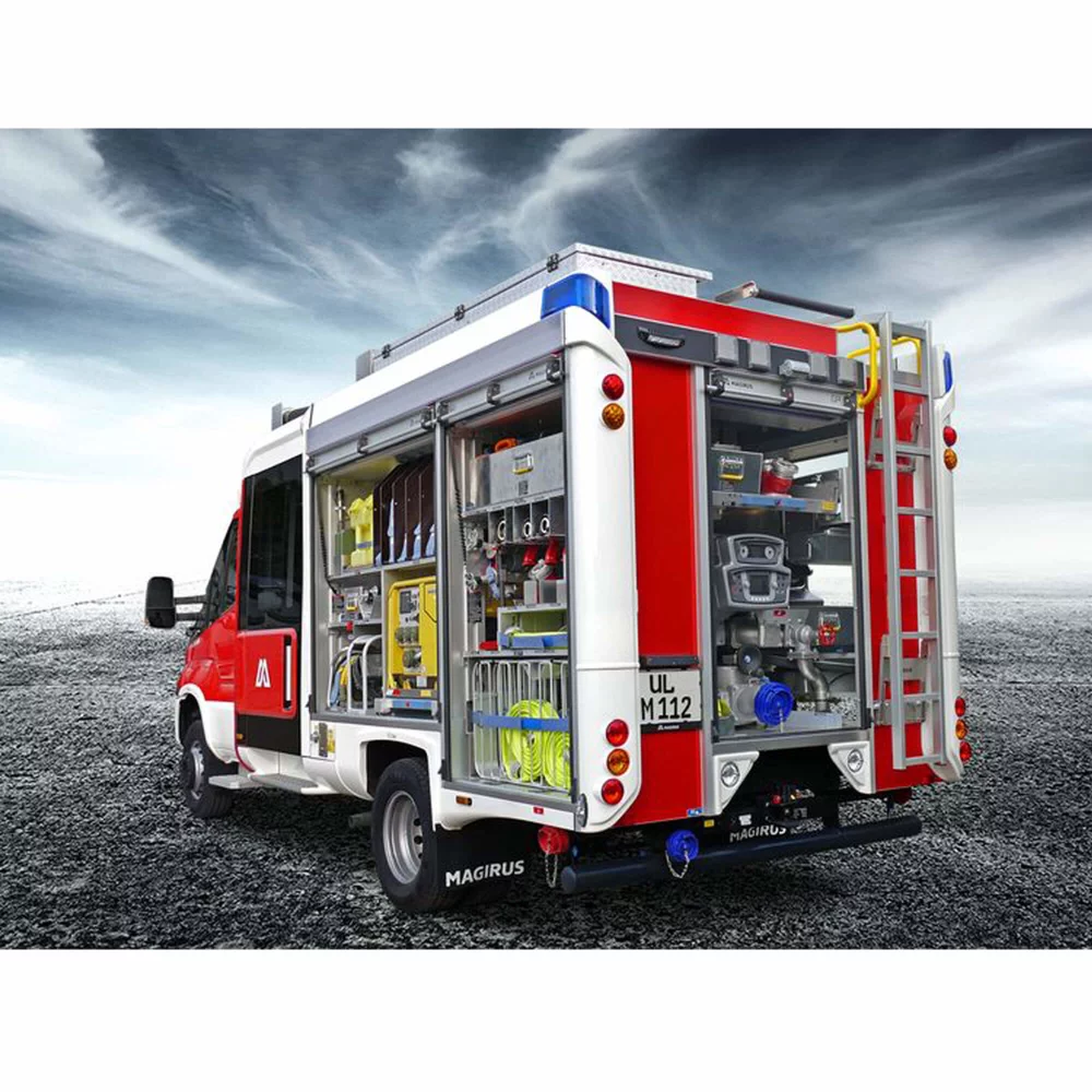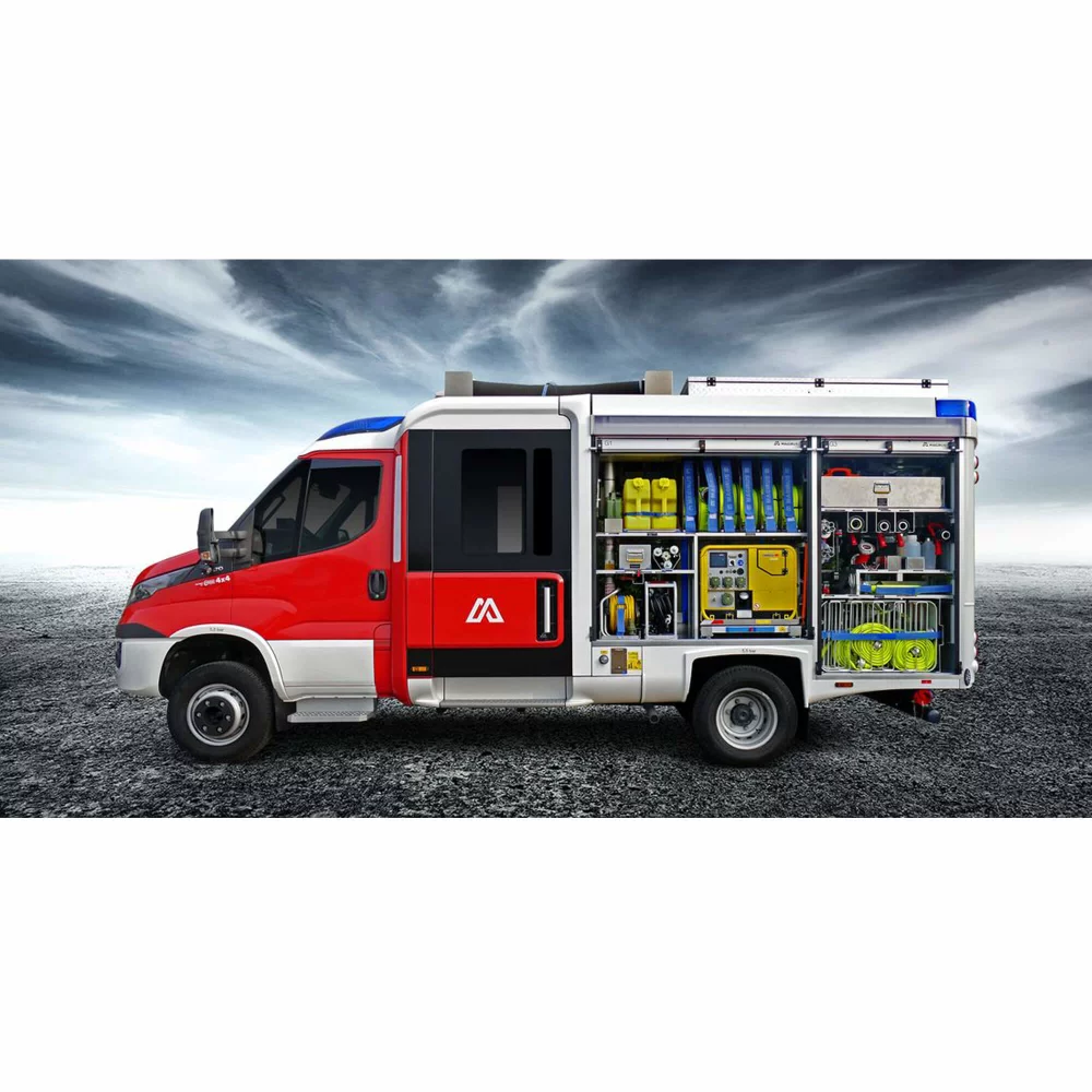 Kompaktan i lagan mali pomorski vatrogasni motor, sa rezervoarom za vodu od 1.000 litara i snažnom centrifugalnom pumpom.