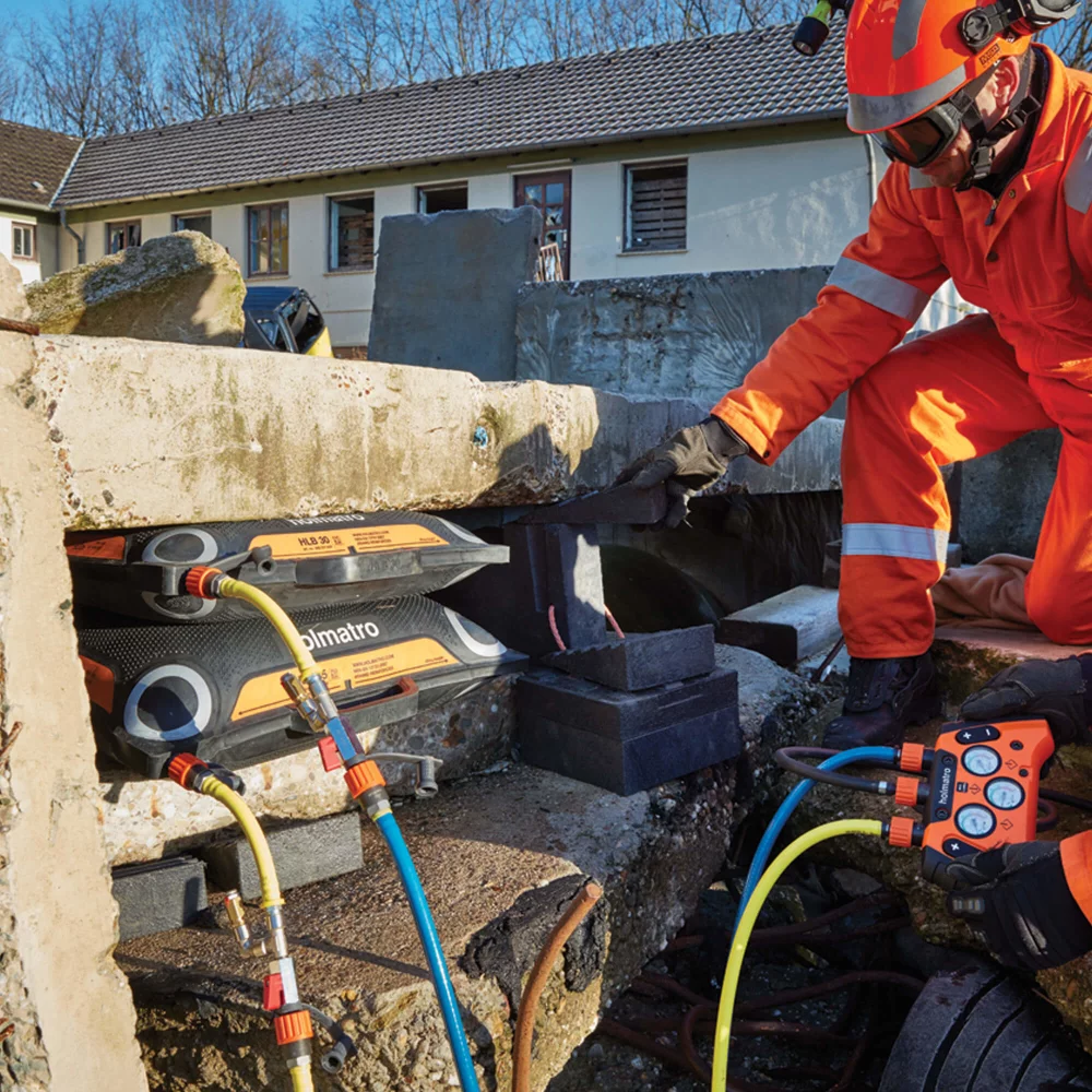 Jastuk za podizanje pod visokim pritiskom, sistem od 12 bara. Dizajniran za maksimalnu sigurnost i kontrolu pri podizanju teških predmeta. Nudi 50% veću nosivost: Iskoristite više energije iz svog visokotlačnog jastučića ili koristite manji i lakši model da biste obavili posao.