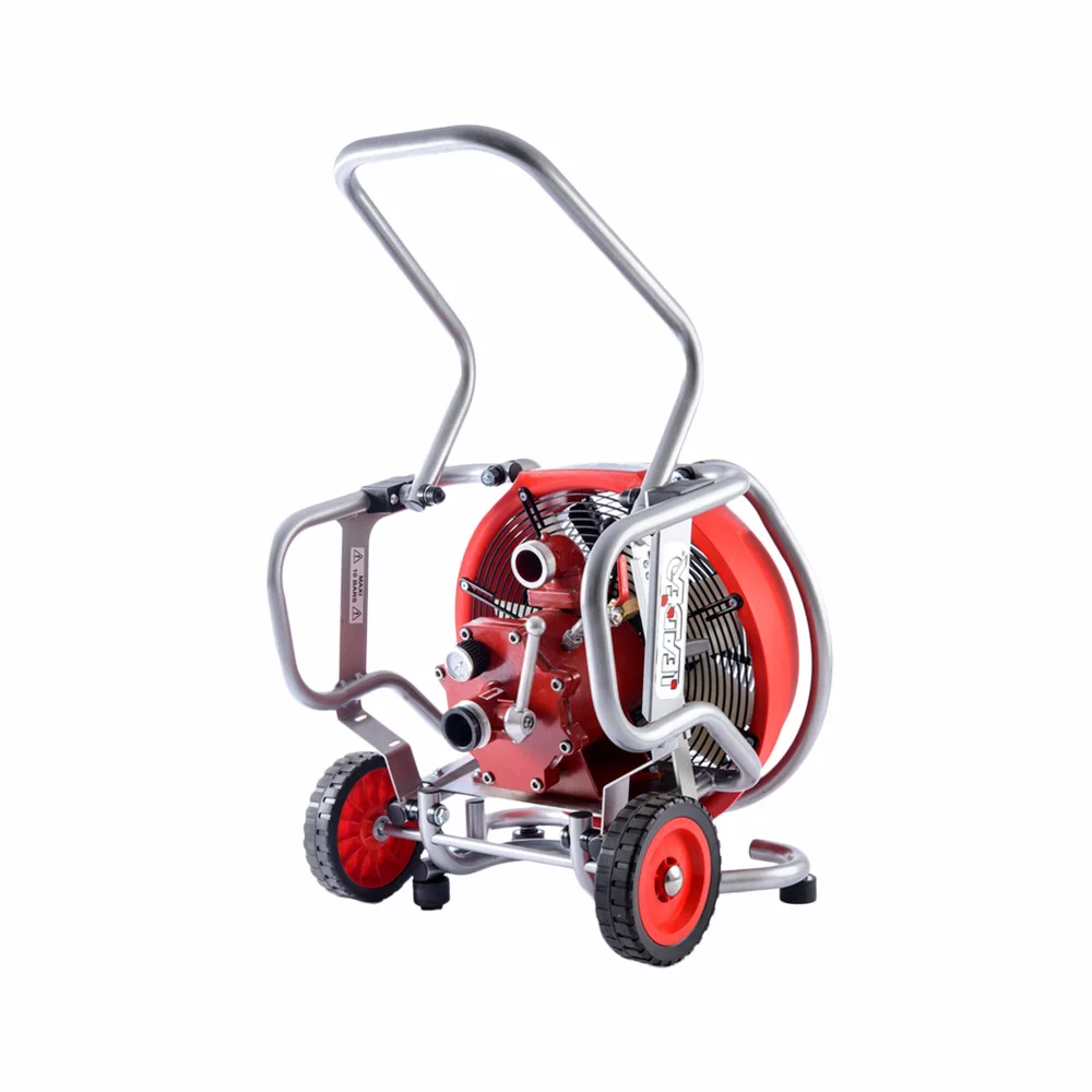 Dizajniran da ne proizvodi izduvne gasove i ne zahteva struju, može se koristiti bilo gde pod uslovom da ima adekvatnu vodosnabdevanje. Opremljen standardnim sistemom vodene magle, ovaj ventilator na vodeni pogon može brzo ohladiti zrak. Kompaktan sa sklopivom ručkom, ne zahtijeva puno prostora i lako se uklapa u vatrogasno vozilo.